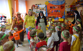 Jako placówka katolicka wychowujemy i kształcimy dzieci w duchu chrześcijańskim. Poprzez różnorodne inicjatywy o charakterze wychowawczym i dydaktycznym dążymy do wspomagania wszechstronnego rozwoju w sferze duchowej, psychicznej i fizycznej. Realizujemy założenia Podstawy programowej wychowania przedszkolnego. Mocnym fundamentem oraz punktem odniesienia dla nas jest nauczanie Kościoła katolickiego oraz spójne z nim postulaty pedagogiczne i psychologiczne. Służy temu: życzliwa i rodzinna atmosfera, warunki do bezpiecznej i twórczej zabawy oraz konkretne, zaplanowane oddziaływania kompetentnego personelu. Z przyjemnością organizujemy dzieciom wycieczki o charakterze dydaktyczno-rekreacyjnym, by mogły poznawać otaczającą je rzeczywistość poprzez bezpośredni z nią kontakt. Gośćmi naszego przedszkola są teatrzyki, agencje artystyczno-edukacyjne oraz przedstawiciele interesujących zawodów. Nasze przedszkolaki mogą w gronie rówieśników obchodzić dzień swoich urodzin, a także Dzień z zabawką.